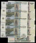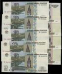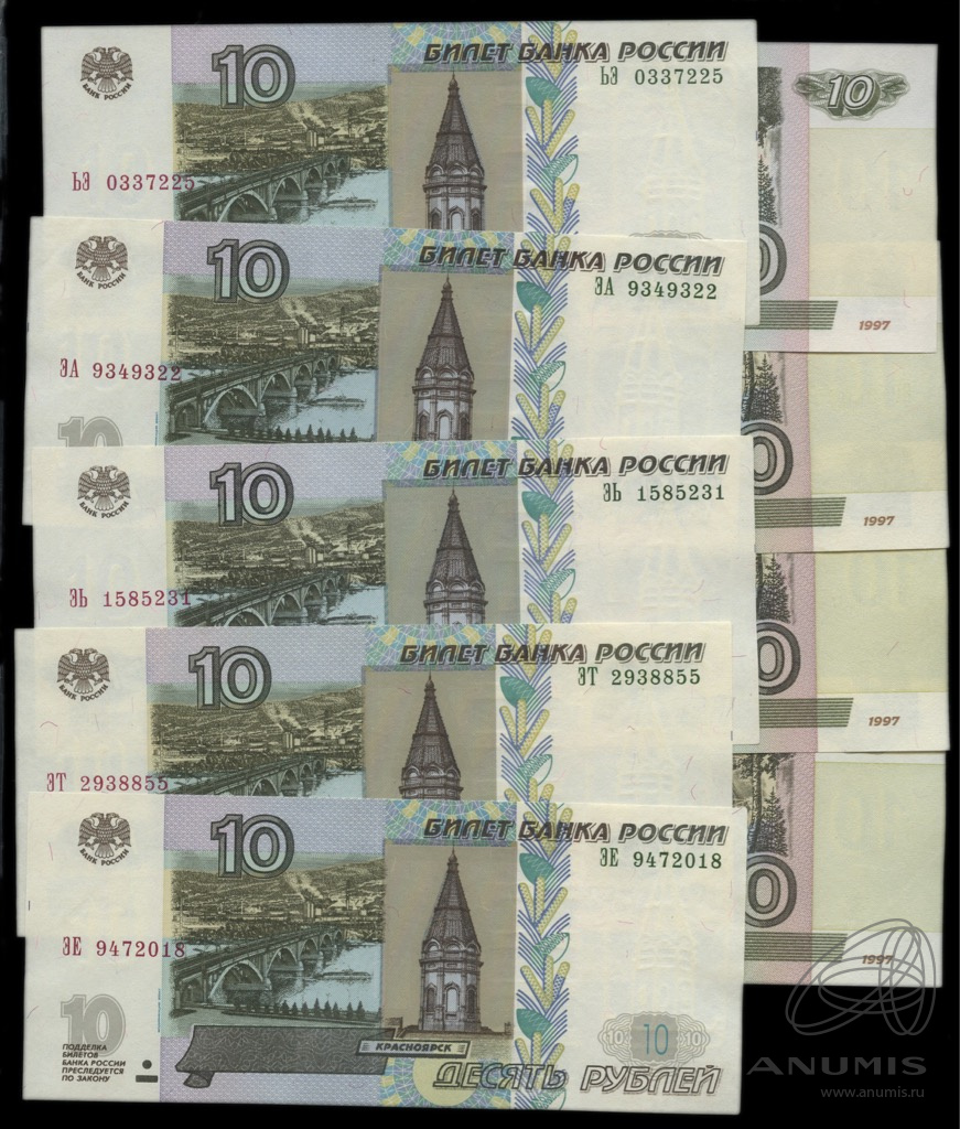 Лот банкнот «10 рублей». 9 шт. Модификация 2004 г