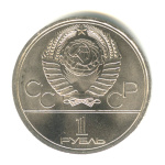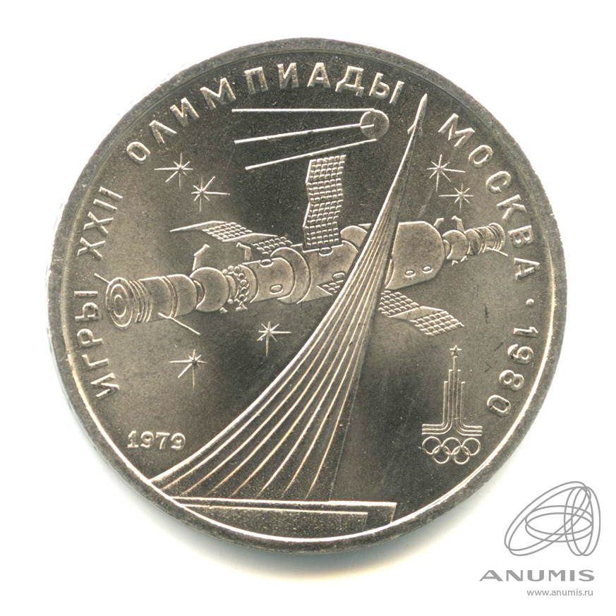 Юбилейная монета: 1 рубль 1979 года «Игры XXII Олимпиады. Обелиск покорителям космоса». Юбилейные 1 рубль 1965 — 1991 гг. Союз Советских Социалистических Республик: СССР поздний (1961 — 1991). Медь-никель, 13 г, ø 31 мм, Гурт: Надпись. Тираж: 5000000 шт.