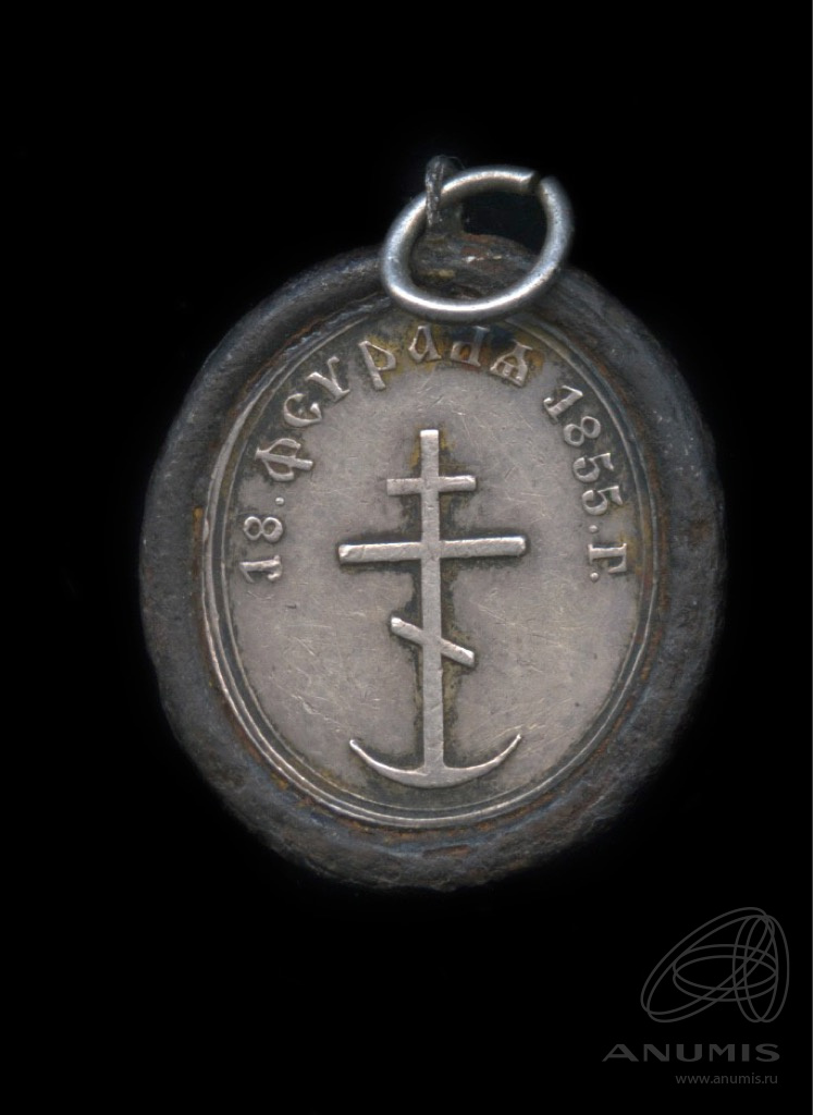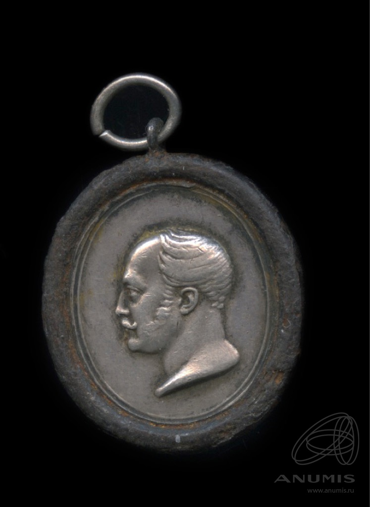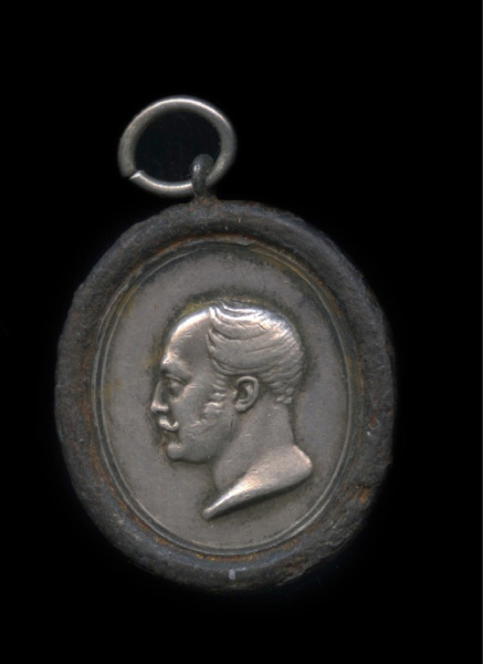 Жетон «В память Императора Николая I. 18 февраля 1855 г». Серебро. Стальной ободок. 2×2.3 см