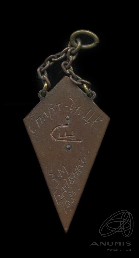 Жетон «3 место в зимней спартакиаде ЦК СШ по лыжным гонкам». Эмаль. Бронза, 18×23 мм