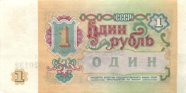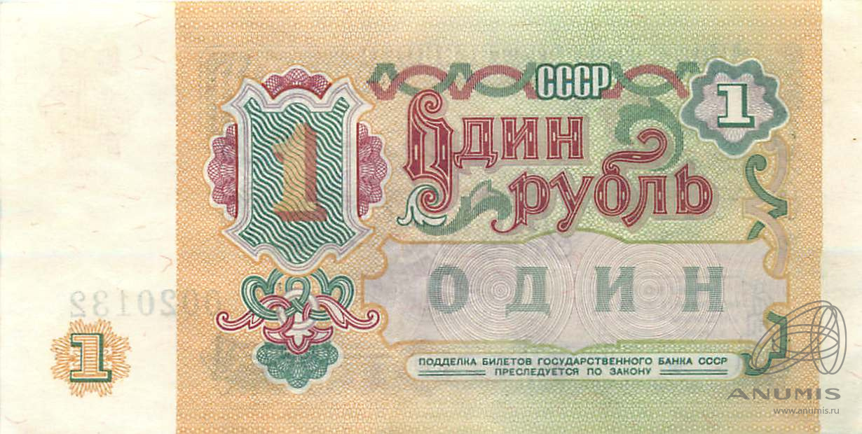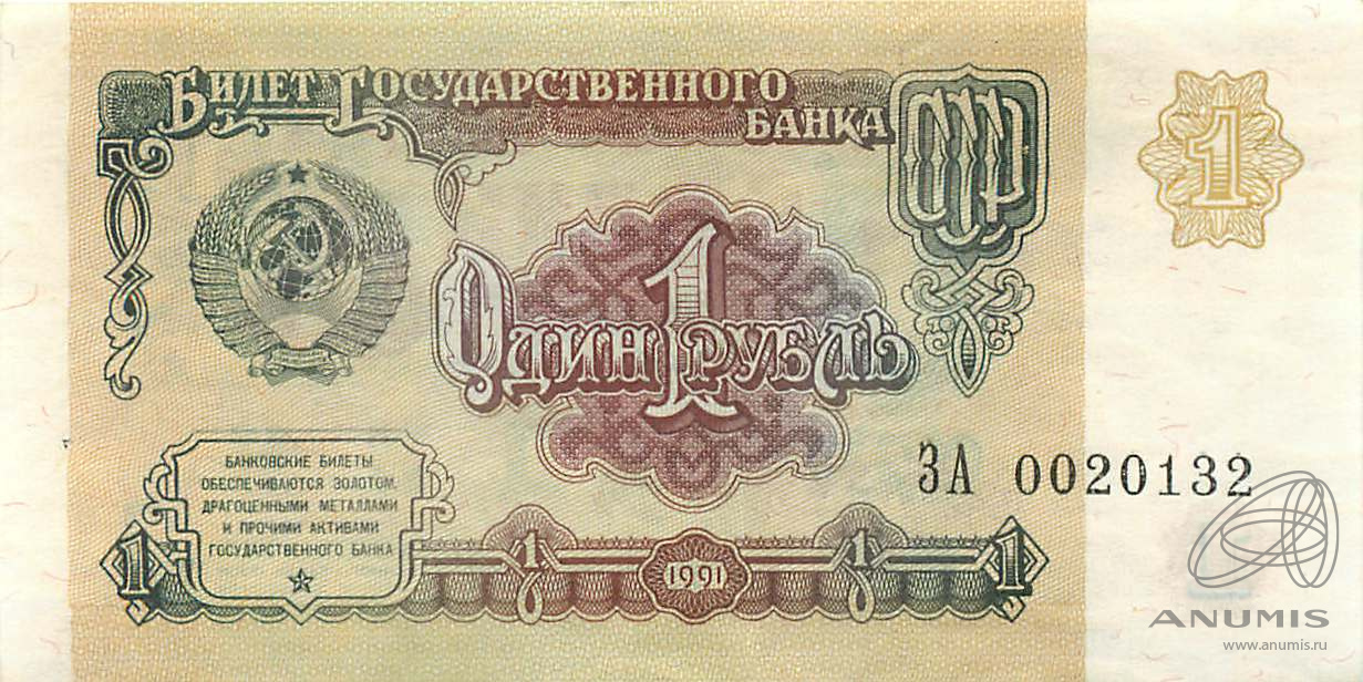 Банкнота регулярного выпуска: 1 рубль 1991 года. Билеты Государственного Банка СССР 1991 г. Союз Советских Социалистических Республик: Госбанк СССР (1991 — 1992).