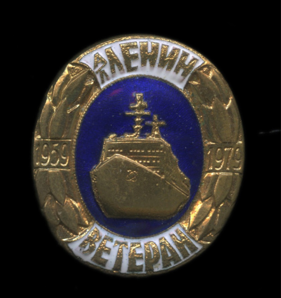 Знак «Ветеран атомного ледокола „Ленин“». Крепление: булавка. Тяжелый, эмаль