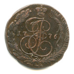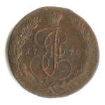 5 копеек — Аверс (орëл) предыдущих лет. Так называемая «перепутка». «Перепутки» 1770, 71 и 74 гг. были открыты в самом конце ХХ века и не попали в классические каталоги Ильина, Гиля и Узденникова. Крайне редкая монета. 1770 ЕМ