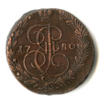 5 копеек — Вензель императрицы Екатерины II Великой. Орел 1780 г. Екатеринбург 1780 ЕМ