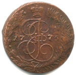 5 копеек — Вензель императрицы Екатерины II Великой. Орел 1768 г. Екатеринбург 1775 ЕМ