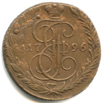 5 копеек — Вензель императрицы Екатерины II Великой. Аннинск 1796 АМ