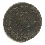 5 копеек — Вензель императрицы Екатерины II Великой. Москва 1766 ММ