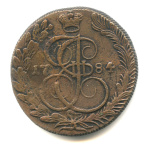 5 копеек — Вензель императрицы Екатерины II Великой. Сузун-Колыванская монета 1784 КМ. Фактический вес — 59,09 г