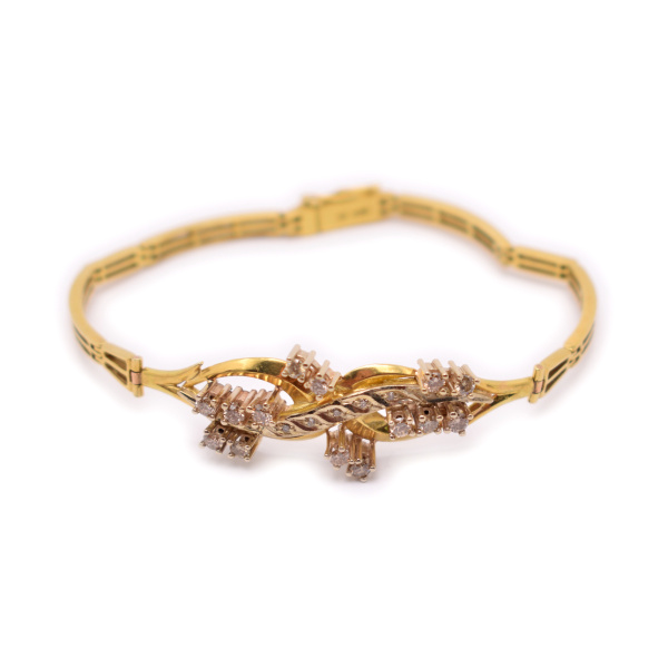Браслет с бриллиантами 14 шт 0,0025 0,35 карат и 5 бриллиантов 0,001 0,05 карат. Золото 585 пробы. 15,11 г. Длина 19 см