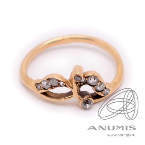 Кольцо с бриллиантами 8 шт 0,015 0,12 карат, 1 бриллиант 0,02, 1 бриллиант 0,015. Золото 500 пробы. ⌀ 16 мм. 2,19 г