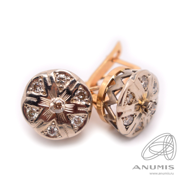 Серьги с бриллиантами 14шт х 0,021 0,29 карат. Золото 585 пробы. 6,81 г. Длина 2,2 см