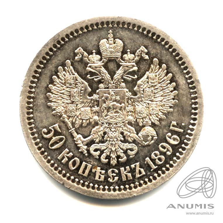 50 копеек— Портрет Николая II 1896 *. Оригинальный штемпельный блеск