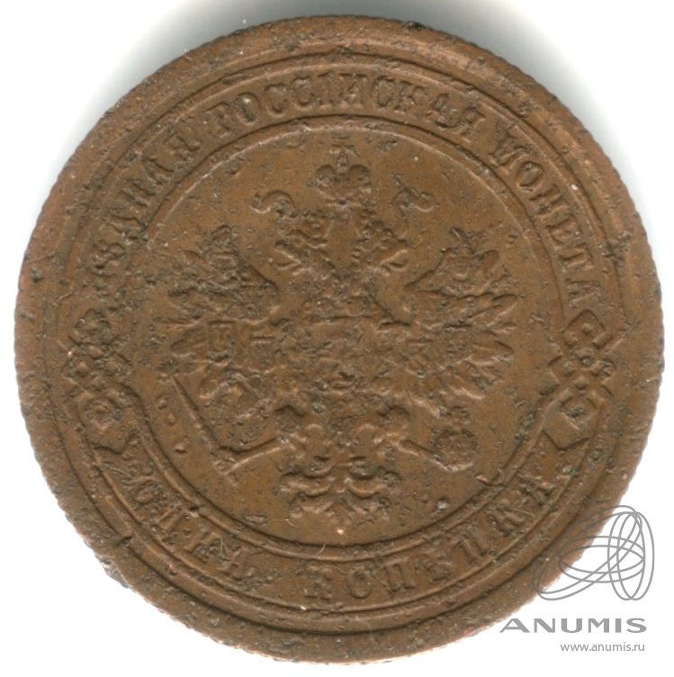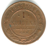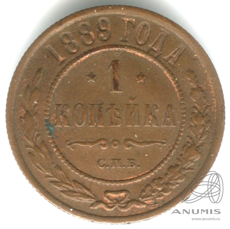 Монета регулярного выпуска: 1 копейка 1889 года. 1 копейка 1867 — 1917 гг. Российская Империя: Николай II (1894 — 1917). Монетный двор: Санкт-Петербургский монетный двор, г. Санкт-Петербург. Медь, 3 г, ø 22 мм, Гурт: Рубчатый. Тираж: 50000000 шт.