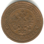 В центре указан номинал — цифра «1», ограниченная с обеих сторон звездочками. Под цифрой номинала — слово «КОПЕЙКА». Ниже, расположен декоративный разделитель в виде двух изогнутых линий и небольшой окружности между ними. Под разделителем — обозначение монетного двора «С.П.Б.». Центральная часть отделена от остального изображения, окружностью в виде точек. В верхней части полукругом углубленная надпись: «1899 ГОДА». Ниже этой надписи, вдоль канта, изображен венок из лавровой и дубовой ветвей, которые, в нижней части, перевязаны лентой на узел бантом.