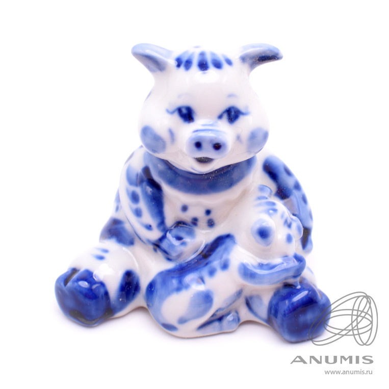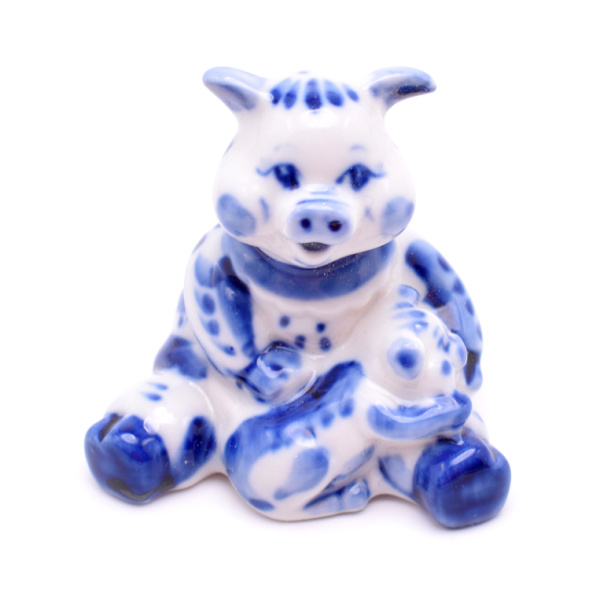 Фигурка фарфоровая «Поросенок». Гжель. Размер 6,5×7 см