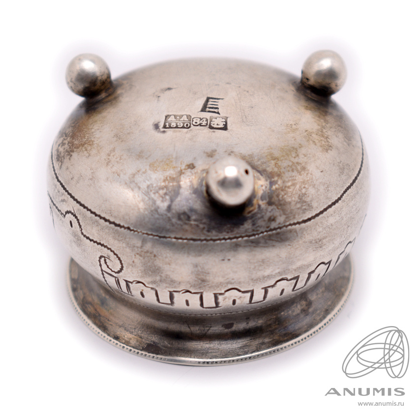 Солонка. Серебро 84 пробы. Размер 4×3 см. 18,1 г