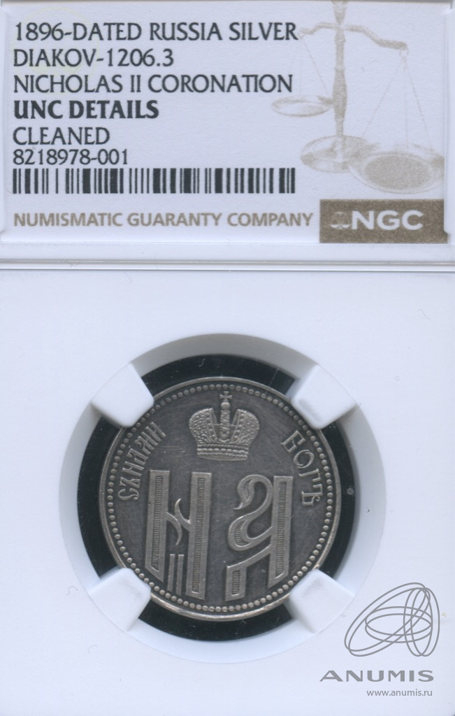 Медаль «Коронация Николая II, состоявшаяся 14 мая 1896 года в Москве». Дьякова — 1206.3. В слабе