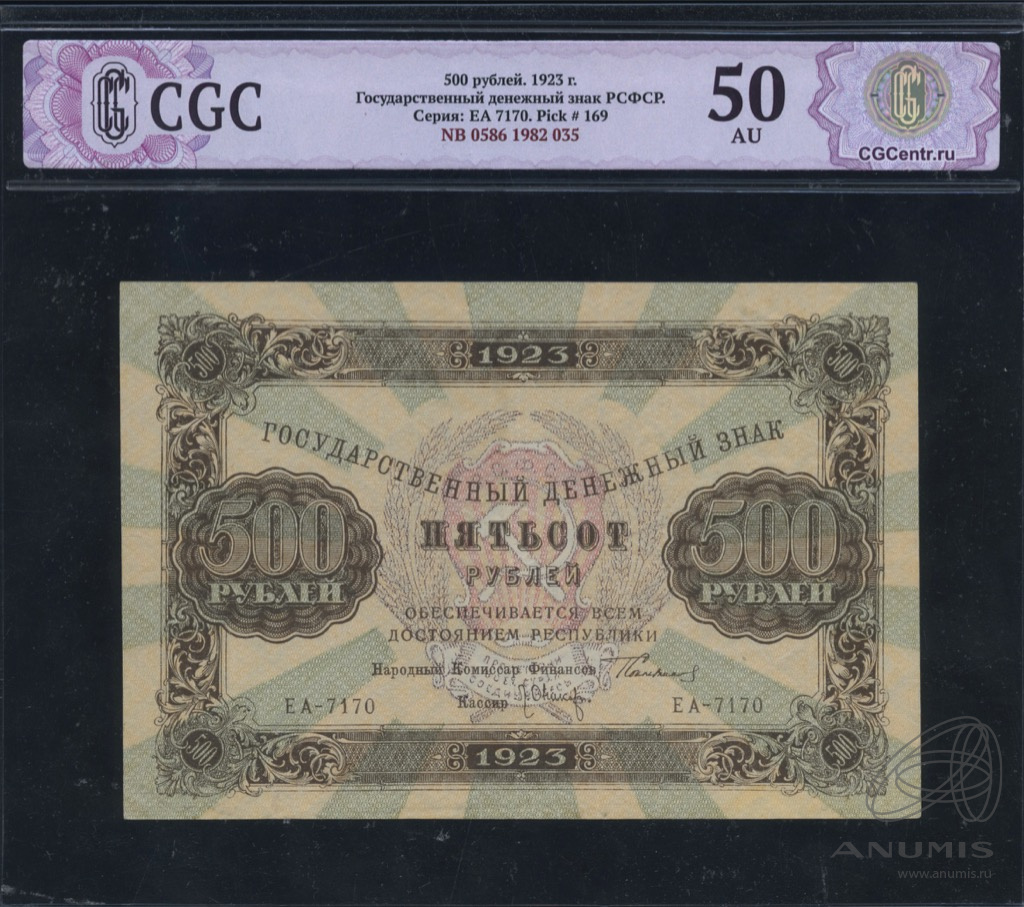 Банкнота регулярного выпуска: 500 рублей 1923 года «2 выпуск. Нарком фин. Сокольников. Оникер». Денежные знаки 1923 г. Второй выпуск. Российская Советская Федеративная Социалистическая Республика: РСФСР (1919 — 1923).
