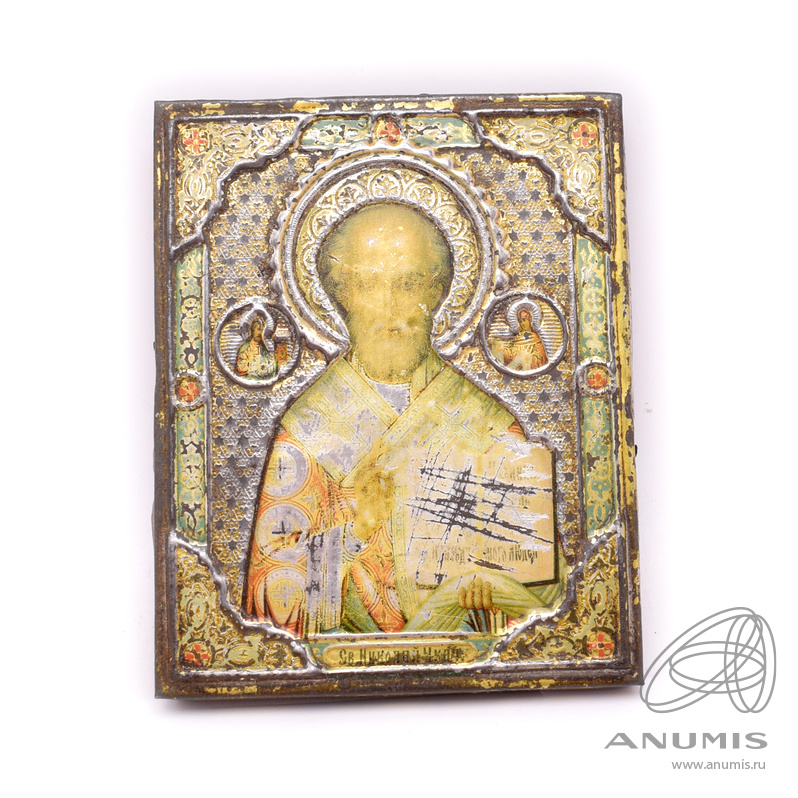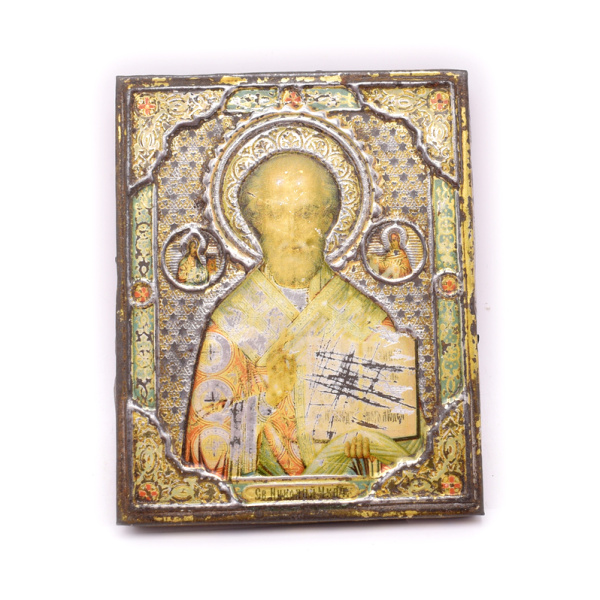 Икона Святой Николай. Металл, дерево. Размер 9×11,5 см