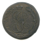 5 копеек — Вензель императрицы Екатерины II Великой. Орел 1780 г. Екатеринбург 1783 ЕМ