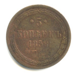 5 копеек — Вензель императрицы Екатерины II Великой. Орел 1780 г. Екатеринбург 1784 ЕМ. Брак «двойной удар»