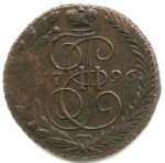 5 копеек — Вензель императрицы Екатерины II Великой. Орел 1789 г. Екатеринбург 1796 ЕМ. Чекан 1797 года на гладком кружке. Редкость