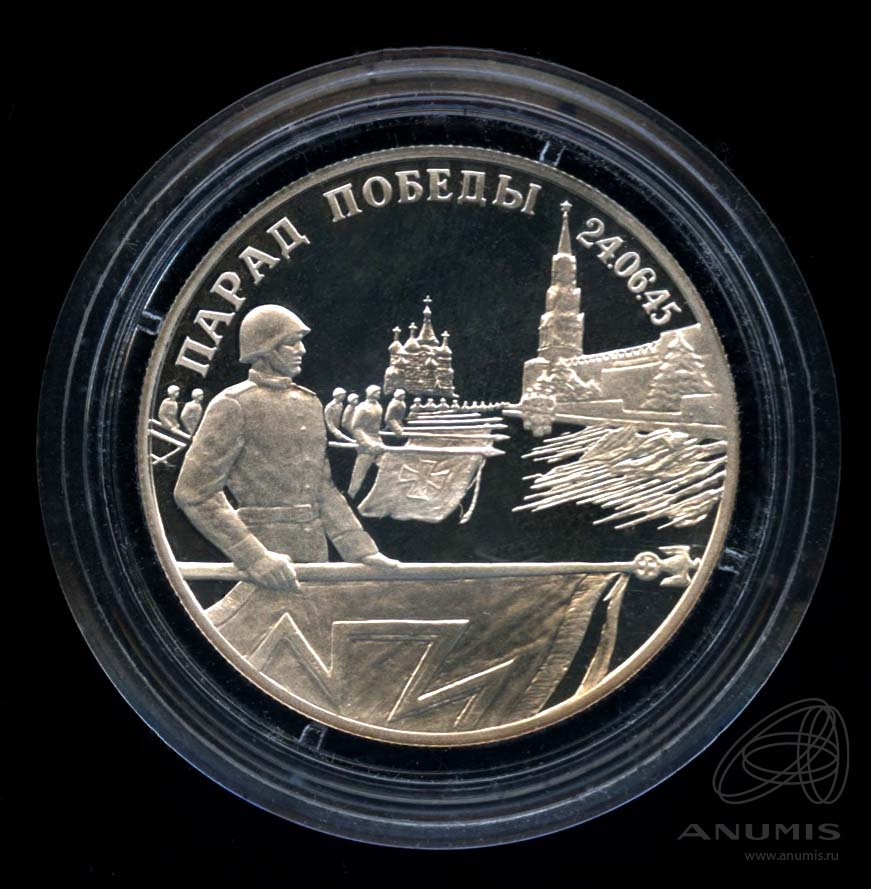 2 рубля — Парад Победы в Москве (Флаги у Кремлевской стены). 1995 ЛМД. Аверс нового образца — Орел. Исключительно редкая, востребованная монета