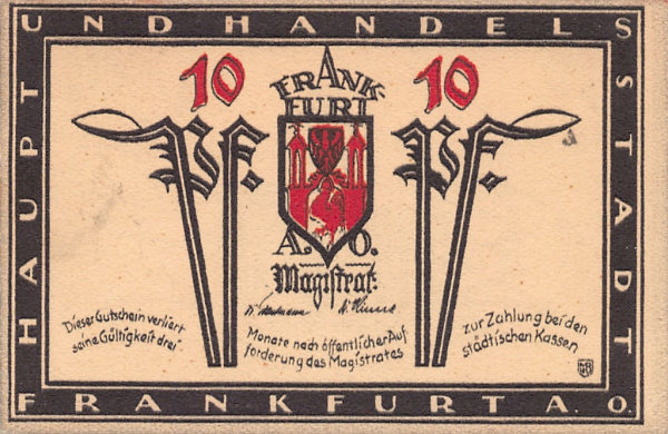 10 пфеннингов 1922. нотгельд коллекция Г. и Я. Абезгузов. Франкфурт — на — Одере
