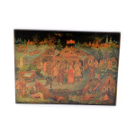 Палехская лаковая миниатюра. Миниатюра посвящена теме Великой Отечественной войны. Размер 17×12 см