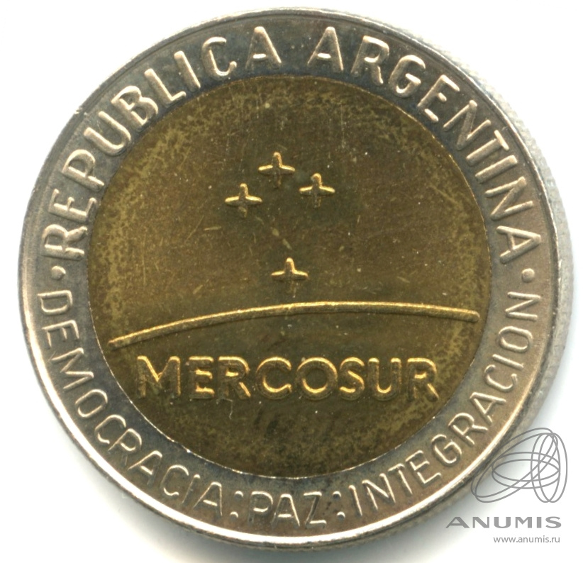 1 песо — Общий рынок стран Южной Америки. Меркосур. (Юбилейная монета) 1998. редкий песо