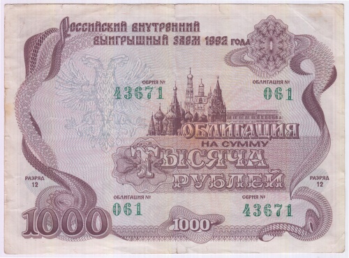 1000 рублей. Облигация 1992 (Россия)