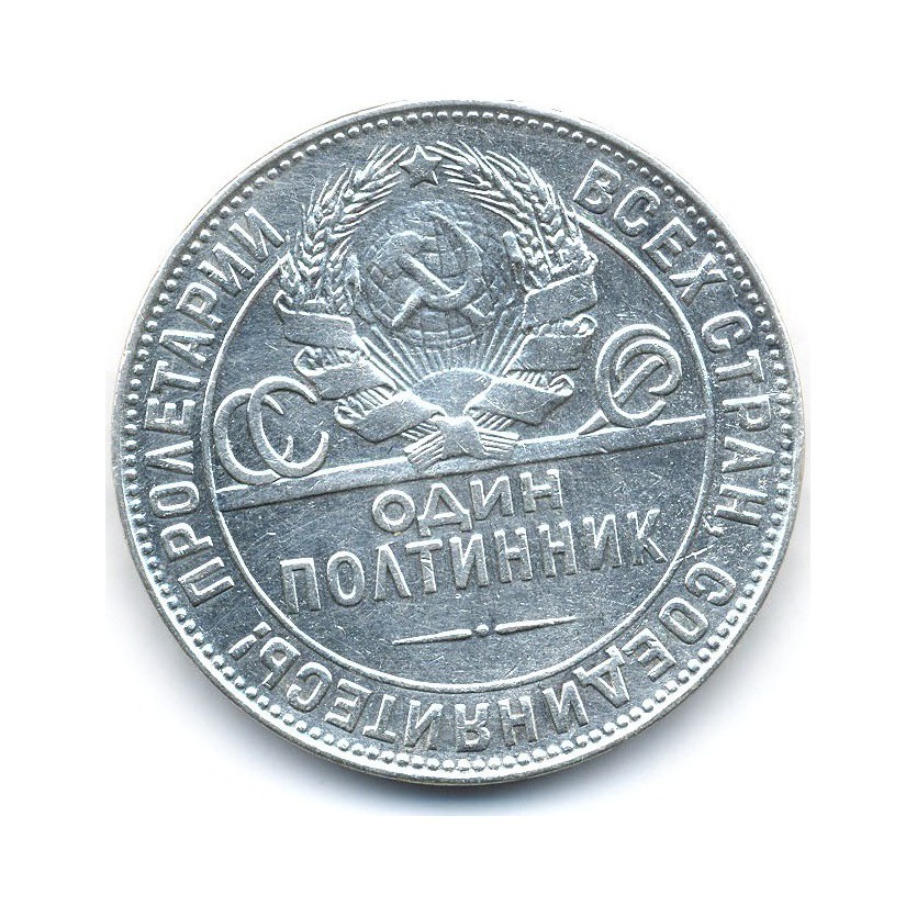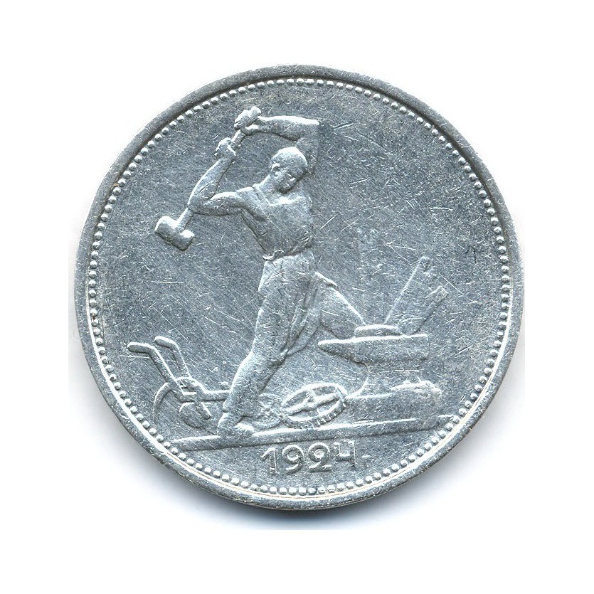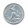 Монета регулярного выпуска «50 копеек 1924 года» Советский Союз (1924 - 1958) (СССР) Инициалы на гурте — «T.P.» (T.R.) — Томас Росс — минцмейстер Лондонского Монетного Двора Серебро 0.900