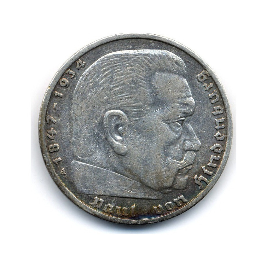 Монета регулярного выпуска «5 рейхсмарок 1939 года» Нацистская Германия (1933 - 1945) (Германия (Третий рейх)) Монетный двор: «A», Берлин Серебро 0.900