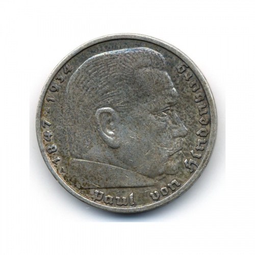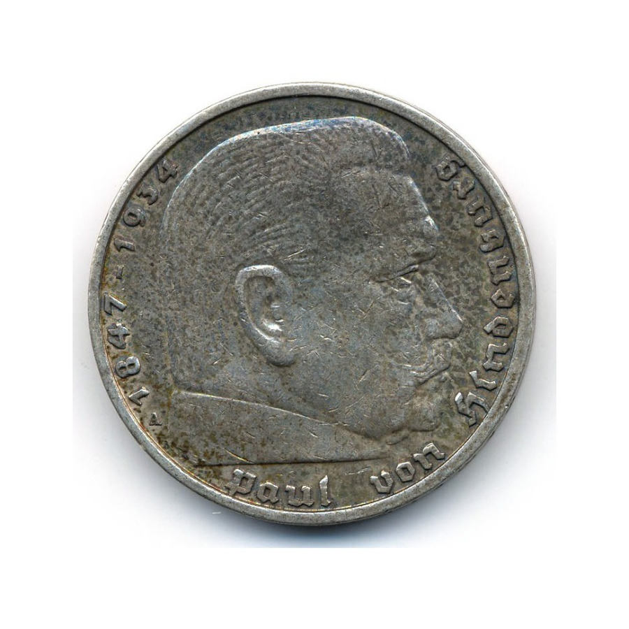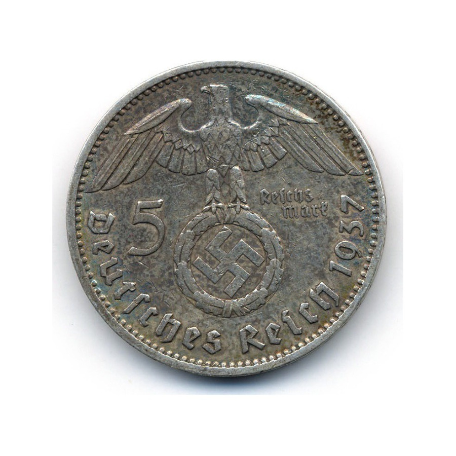 Монета регулярного выпуска «5 рейхсмарок 1937 года» Нацистская Германия (1933 - 1945) (Германия (Третий рейх)) Монетный двор: «A», Берлин Серебро 0.900
