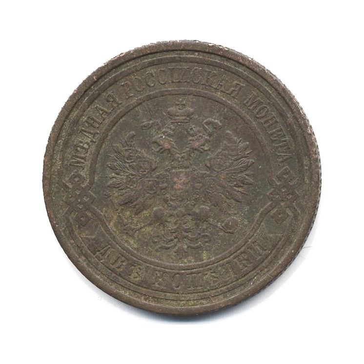 Монета регулярного выпуска «2 копейки 1912 года» 1895-1917 (Николай II) (Российская Империя) Монетный двор: Санкт-Петербургский монетный двор, Санкт-Петербург Медь