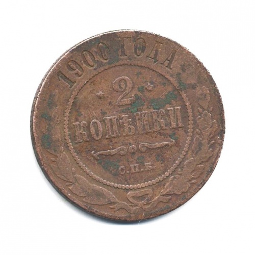 Монета регулярного выпуска «2 копейки 1900 года» 1895-1917 (Николай II) (Российская Империя) Монетный двор: Санкт-Петербургский монетный двор, Санкт-Петербург Медь