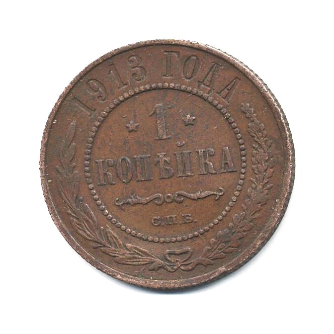 Монета регулярного выпуска «1 копейка 1913 года» 1895-1917 (Николай II) (Российская Империя) Монетный двор: Санкт-Петербургский монетный двор, Санкт-Петербург Медь