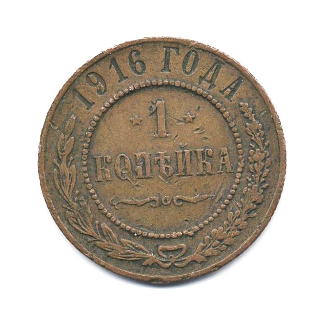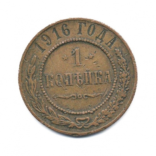 Монета регулярного выпуска «1 копейка 1916 года» 1895-1917 (Николай II) (Российская Империя) Медь
