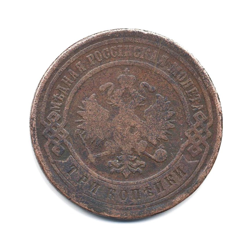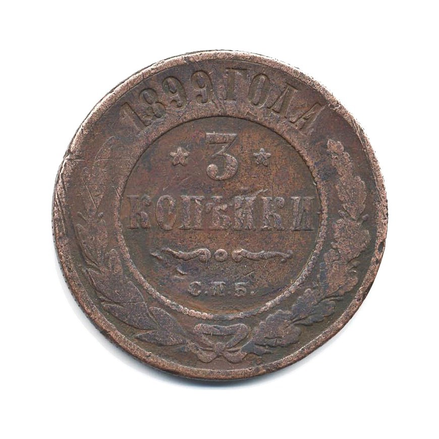 Монета регулярного выпуска «3 копейки 1899 года» 1895-1917 (Николай II) (Российская Империя) Монетный двор: Санкт-Петербургский монетный двор, Санкт-Петербург Медь