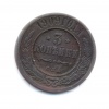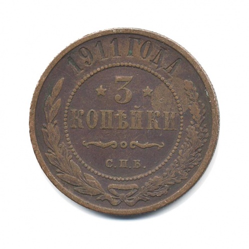 Монета регулярного выпуска «3 копейки 1911 года» 1895-1917 (Николай II) (Российская Империя) Монетный двор: Санкт-Петербургский монетный двор, Санкт-Петербург Медь