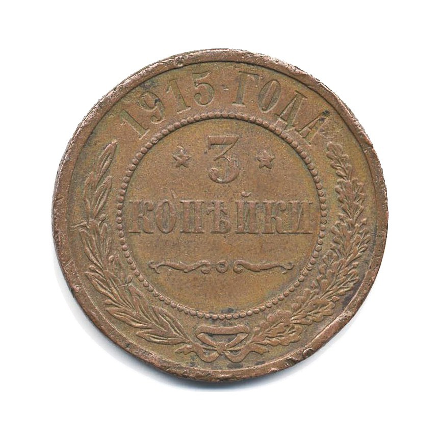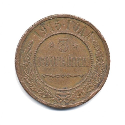 Монета регулярного выпуска «3 копейки 1915 года» 1895-1917 (Николай II) (Российская Империя) Медь