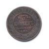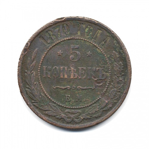Монета регулярного выпуска «5 копеек 1870 года» 1855-1881 (Александр II) (Российская Империя) Монетный двор: Екатеринбургская монета, Екатеринбург Медь