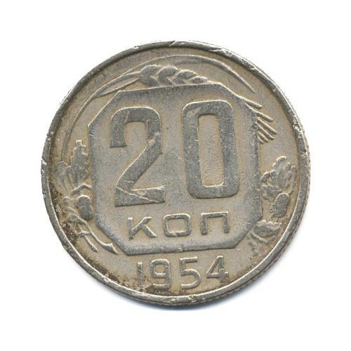 Монета регулярного выпуска «20 копеек 1954 года» Советский Союз (1924 - 1958) (СССР) Медно-никелевый сплав