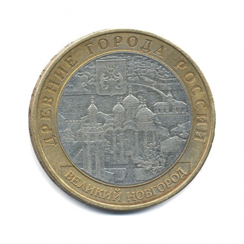 Юбилейная монета «10 рублей 2009 года „Великий Новгород. Древние города России.“» Российская Федерация (1997 - 2013) (Россия) Монетный двор: «ММД» — Москва Би-металл: центр - медно-никелевый сплав, кольцо - латунь