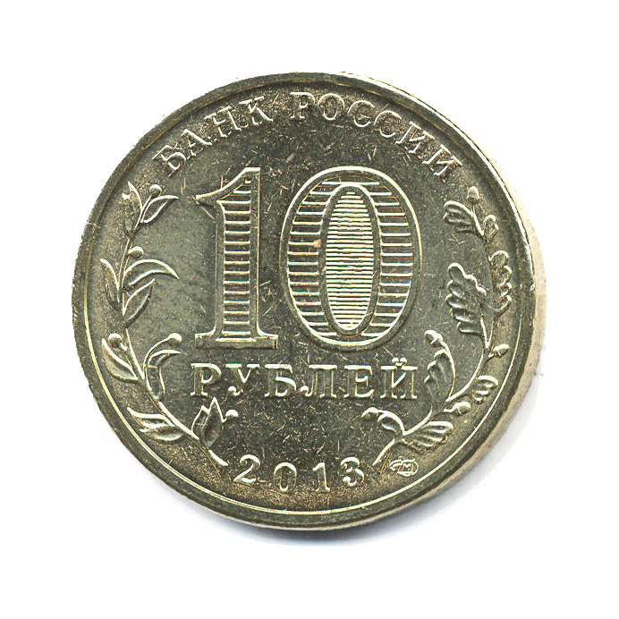 Юбилейная монета «10 рублей 2013 года „Города воинской славы - Вязьма“» Российская Федерация (1997 - 2013) (Россия) Сталь с латунным покрытием