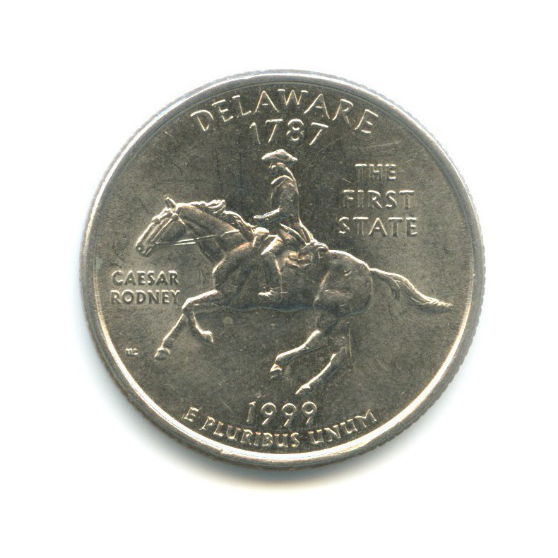Юбилейная монета «25 центов (квотер) 1999 года „Квотер штата Делавэр“» Квотеры «50 штатов» (1999 - 2009) (США) Монетный двор: «P», Филадельфия Медь с медно-никелевым покрытием