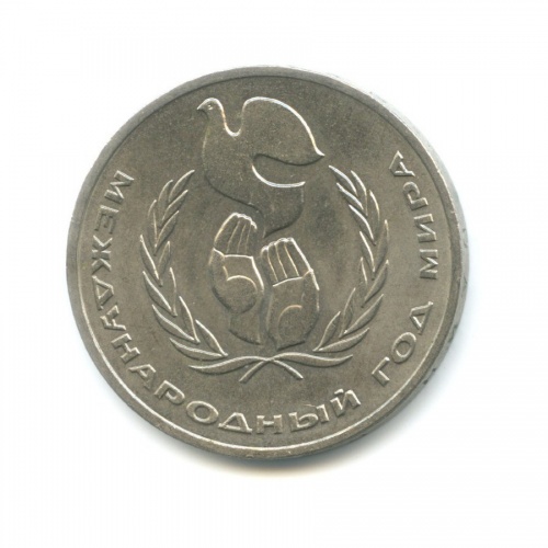Юбилейная монета «1 рубль 1986 года „Международный год мира“» Советский Союз (1961 - 1991) (СССР) «РУБЛЬ», написано с буквой «Л» Медь-Никель-Цинк