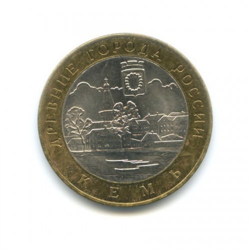 Юбилейная монета «10 рублей 2004 года „Кемь. Древние города России.“» Российская Федерация (1997 - 2013) (Россия) Би-металл: центр - медно-никелевый сплав, кольцо - латунь