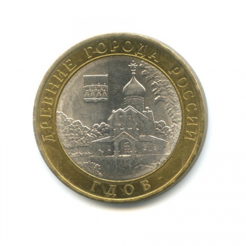 Юбилейная монета «10 рублей 2007 года „Гдов. Древние города России.“» Российская Федерация (1997 - 2013) (Россия) Монетный двор: «СПМД» — Санкт-Петербург Би-металл: центр - медно-никелевый сплав, кольцо - латунь