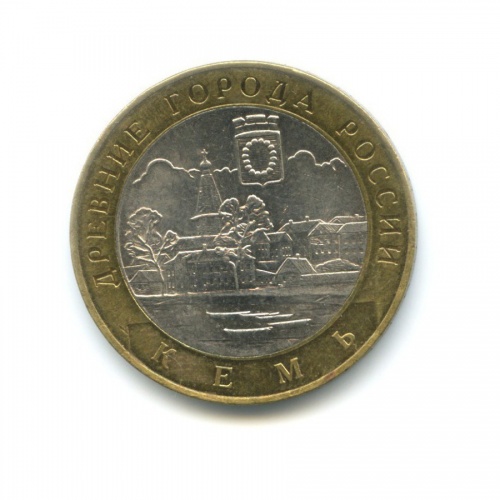 Юбилейная монета «10 рублей 2004 года „Кемь. Древние города России.“» Российская Федерация (1997 - 2013) (Россия) Би-металл: центр - медно-никелевый сплав, кольцо - латунь